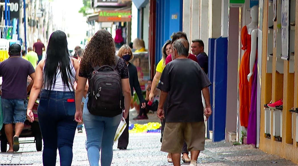 Confiança do comércio inicia 2023 em queda, acumulando queda de 19 pontos nos últimos quatro meses; confiança de Serviços atinge menor nível desde fevereiro de 2022. Consumidores caminham por ruas no Centro de Franca, SP lojas comércio comerciante